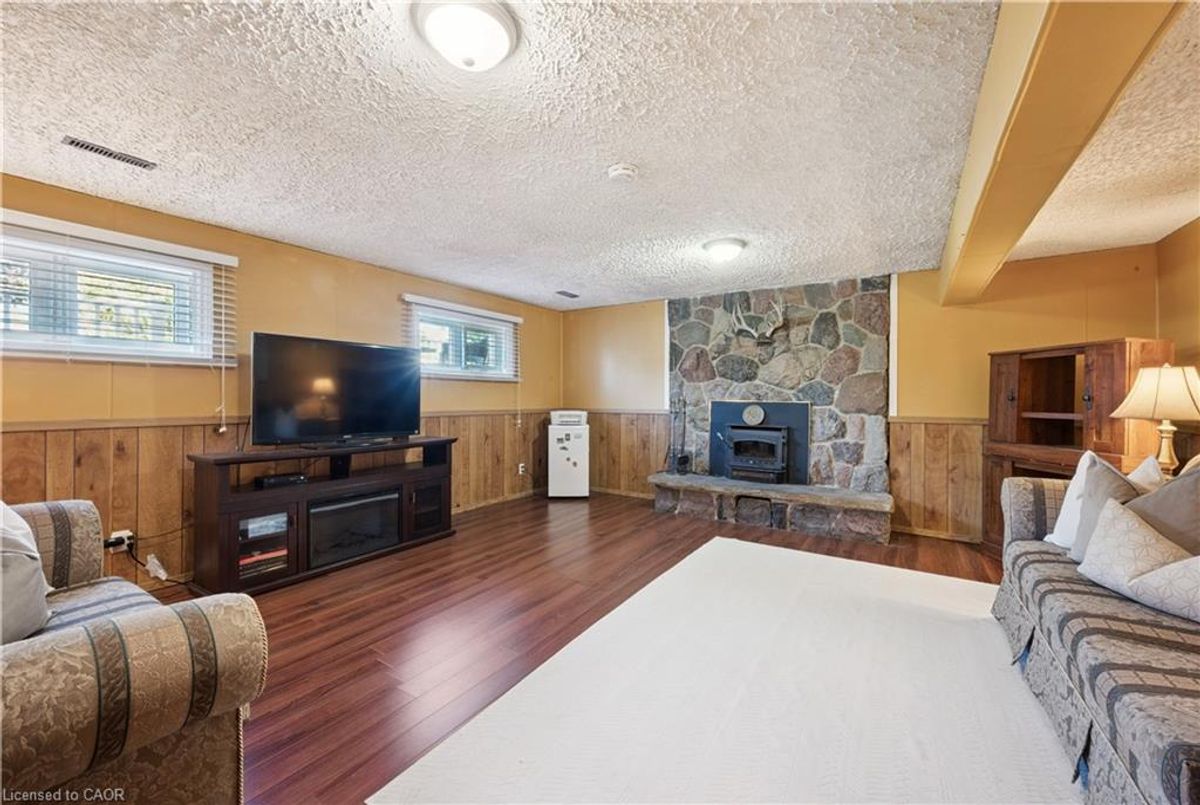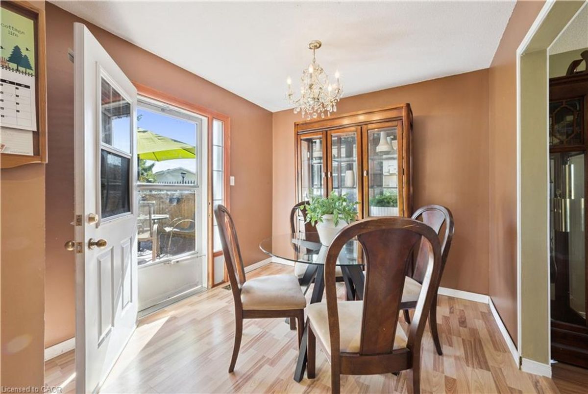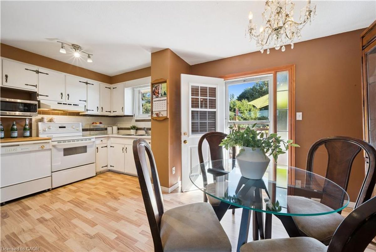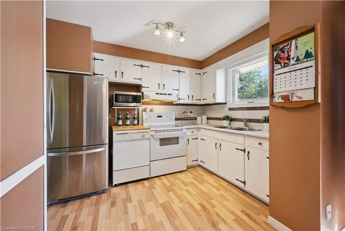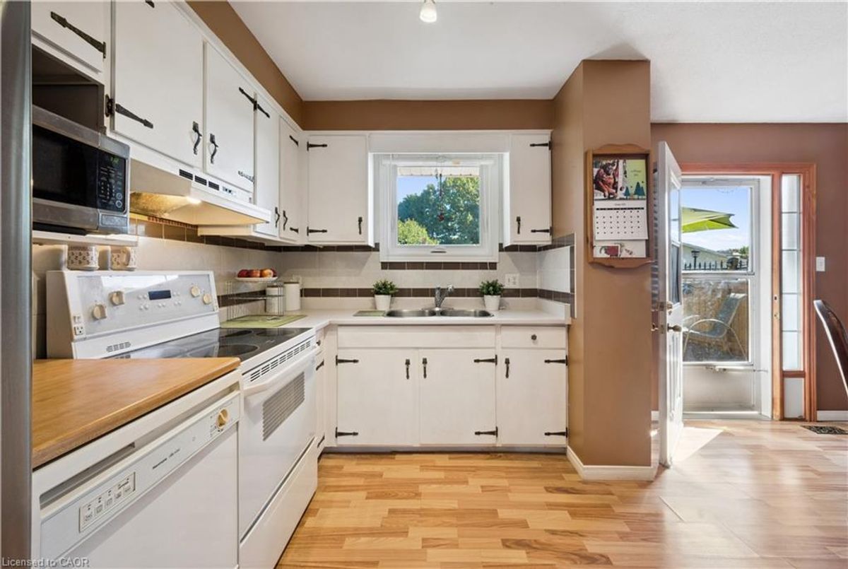 Welcome Home, (QUICK ACCESS TO 401) This charming 3-bed, 2-bath bungalow offers the perfect blend of space, comfort, and value in one of Kitchener’s most family-friendly neighbourhoods. Step inside to a bright, inviting foyer that opens into a spacious living room, flowing seamlessly into the kitchen and dining area — ideal for everyday living and entertaining. From the dining area, a garden door leads to a private deck overlooking the fully fenced backyard, perfect for relaxing or hosting summer barbecues. The carpet-free main floor features newer flooring, three generous bedrooms, plus a refreshed full bathroom. Downstairs, the large finished rec room offers a cozy wood stove, a convenient 2-piece bath, laundry, and plenty of storage space — plus inside access to an oversize garage. Lovingly maintained by the same owners for nearly 30 years, this home truly shows pride of ownership throughout. Located directly across from a school and close to parks, trails, shopping, highway access, and all amenities, this South Kitchener gem is one yoon’t want to miss!