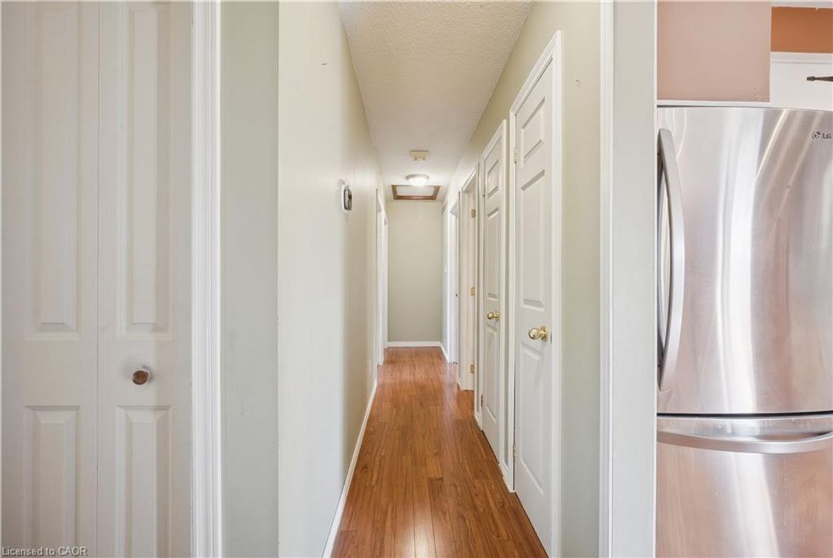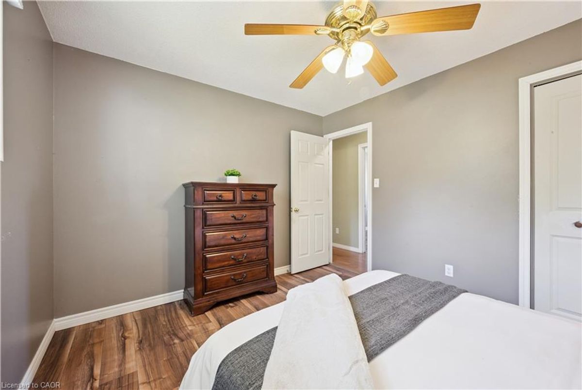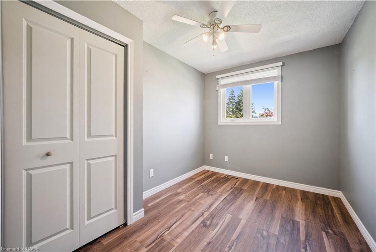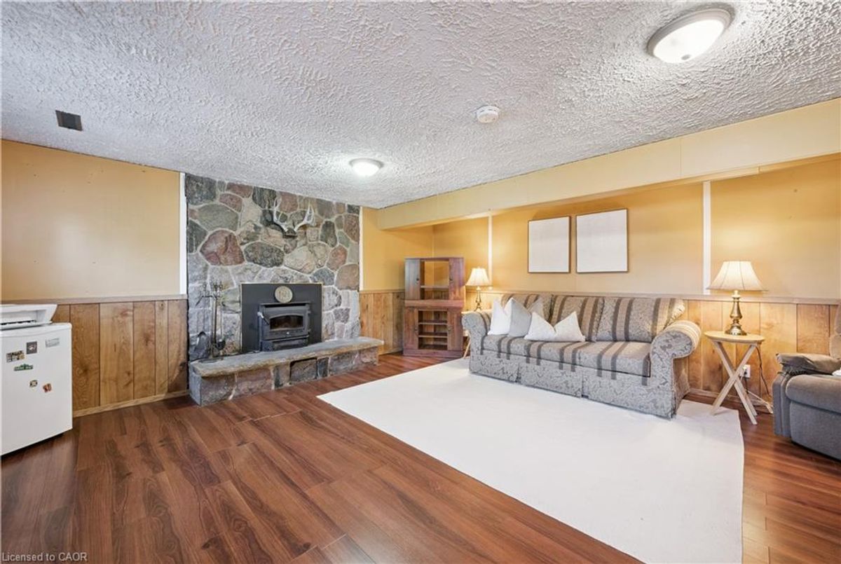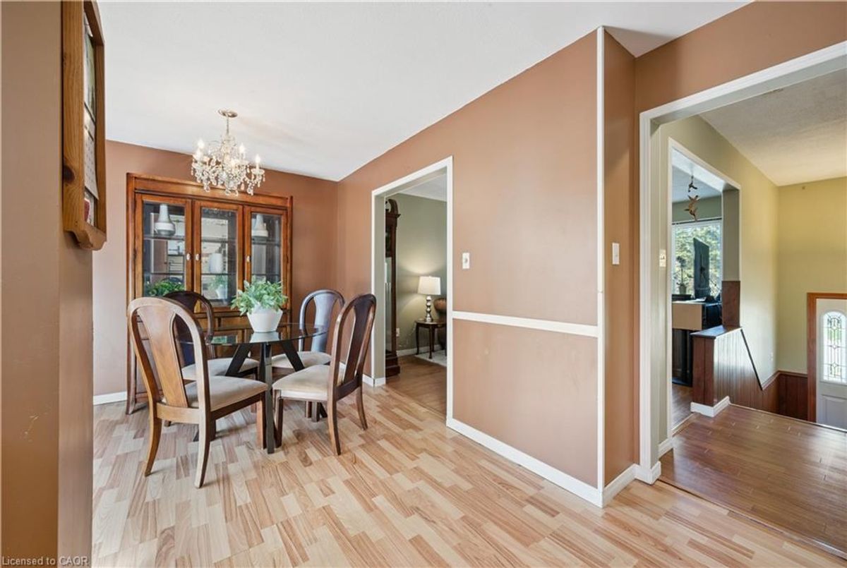 Welcome Home, (QUICK ACCESS TO 401) This charming 3-bed, 2-bath bungalow offers the perfect blend of space, comfort, and value in one of Kitchener’s most family-friendly neighbourhoods. Step inside to a bright, inviting foyer that opens into a spacious living room, flowing seamlessly into the kitchen and dining area — ideal for everyday living and entertaining. From the dining area, a garden door leads to a private deck overlooking the fully fenced backyard, perfect for relaxing or hosting summer barbecues. The carpet-free main floor features newer flooring, three generous bedrooms, plus a refreshed full bathroom. Downstairs, the large finished rec room offers a cozy wood stove, a convenient 2-piece bath, laundry, and plenty of storage space — plus inside access to an oversize garage. Lovingly maintained by the same owners for nearly 30 years, this home truly shows pride of ownership throughout. Located directly across from a school and close to parks, trails, shopping, highway access, and all amenities, this South Kitchener gem is one yoon’t want to miss!